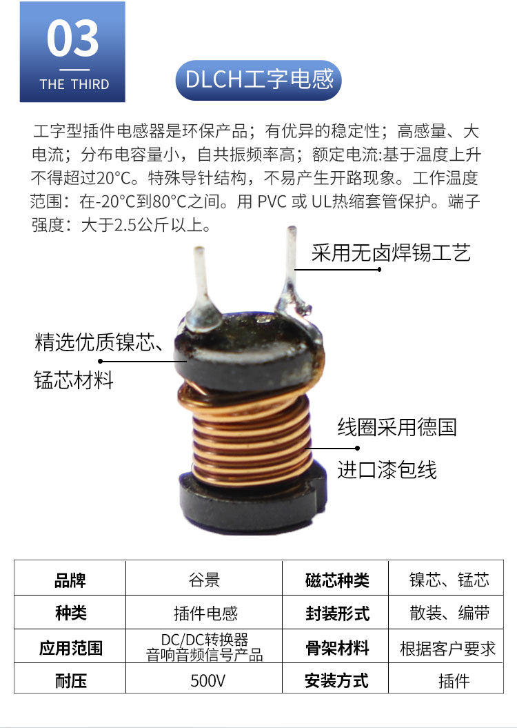 DLGBX工字電感:尺寸:4.5*7.0-18.0*20.0;感量:1uH-100mH;精度:J級(±10%)、K級(±10%)、M級(±20%);電流量:25mA-16.5A;特點:小體積,高儲能;適用于:電視、電源供應(yīng)器、LED照明等。詳情咨詢:0512-65368862。工字電感,工字電感廠家,工字電感0406,工字電感0608,工字電感0810,工字電感0912,工字電感1010,工字電感1012,屏蔽工字電感,47uh工字電感,33uH工字電感,220uH工字電感,工字電感生產(chǎn)廠家,電感定制,屏蔽工字電感,杭州工字電感,南京工字電感