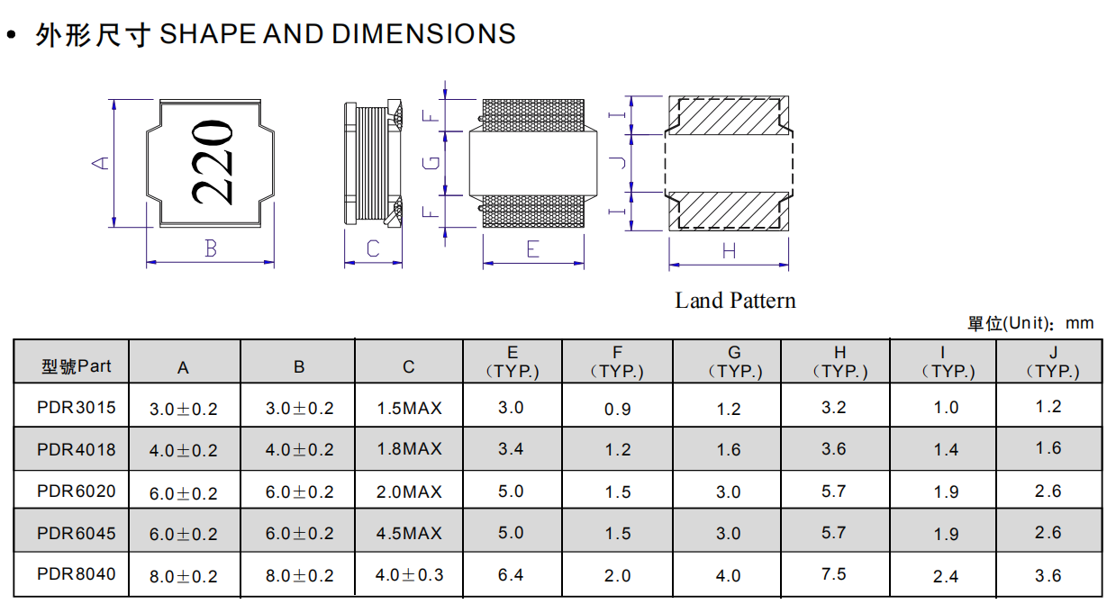 如下圖所示:PDR系列貼片屏蔽電感和GNR系列貼片屏蔽電感的外形尺寸幾乎沒有差別,谷景電子的GNR系列貼片屏蔽電感不僅囊括了風華高科PDR系列的5種型號,還有12種型號可以供客戶選擇,如果這些還不能滿足客戶的要求,谷景還可以提供定制服務(wù)。