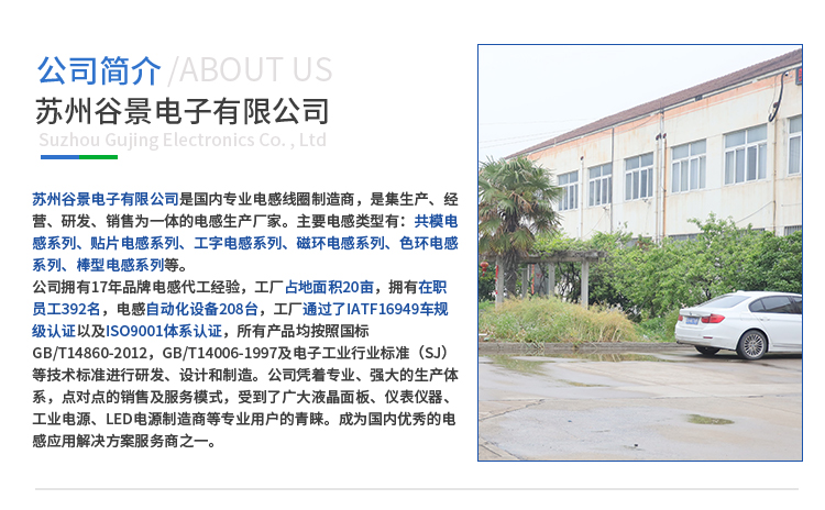 蘇州谷景電子有限公司,一家從事貼片電感,色環(huán)電感,工字電感,磁環(huán)電感,線圈電感,貼片磁珠,定制電感服務的電感廠家,電感生產(chǎn)商。蘇州谷景電子,專業(yè)的貼片電感,貼片插件電感,貼片繞線電感生產(chǎn)廠家,詳情請咨詢0512-89162980